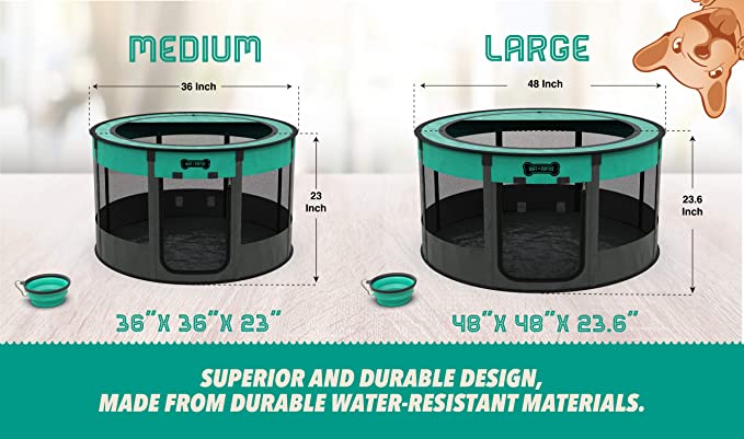 Ruff 'N Ruffus Portable Foldable Pet Playpen +Free Carrying Case + Free Travel Bowl (Medium (36x36x23 inches), Aqua (Blue))